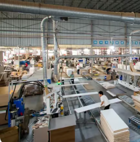 Fasilitas seluas 80,000 m² di Zhaoqing, Tiongkok, dan lokasi strategis seluas 15,000 m² di Jakarta, Indonesia. Mengoperasikan lebih dari 10 jalur produksi industri 4.0 yang sepenuhnya otomatis, Menggunakan teknologi produksi HOMAG Jerman yang paling canggih.