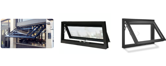 Jendela awning terbuka ke luar dari bagian bawah dan berengsel di bagian atas, sehingga memberikan ventilasi bahkan saat hujan. Jendela awning aluminium banyak digunakan di vila, kantor dan banyak lagi populer di kalangan pemilik rumah dan profesional.