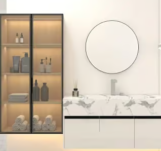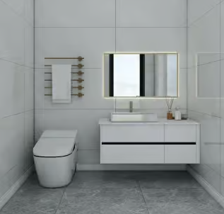 Meja Rias Kamar Mandi premium kami, yang dirancang untuk meningkatkan kemewahan dan fungsionalitas kamar mandi